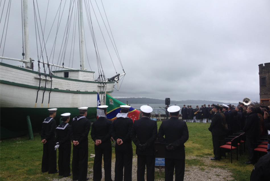 En el patio del Museo, junto a la réplica de la embarcación, autoridades provinciales y comunales, rindieron homenaje a los chilotes, hombres y mujeres que conquistaron los extensos territorios de la Patagonia para el país.