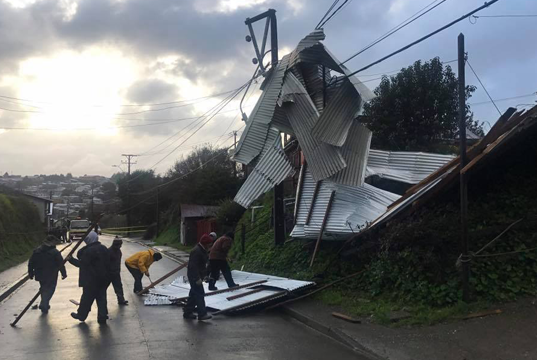 Por otro lado, a raíz del fuerte viento, se registran diversos desprendimientos de techumbre y caída de árboles, principalmente en las comunas de Puerto Montt y Ancud. Trabajan en el lugar Bomberos, Carabineros, empresa eléctrica SAESA y personal municipal.